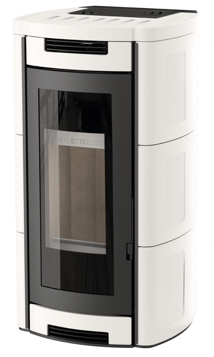 ALADINO is the stove that brings high performance and an unmistakable style to your home. Its lines are classic and its structure simple, yet skillfully reinterpreted with a design approach: the side panels merge into a slight curvature with the soft lines of the front door, made with the characteristic magic glass, creating an elegant aesthetic capable of meeting every need.