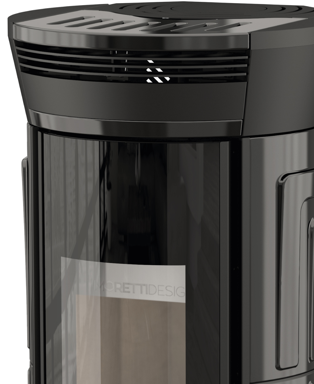 Moretti Design wood stoves are equipped with a rear and top smoke outlet option, giving you the freedom to install the flue as you prefer: concealed or exposed.