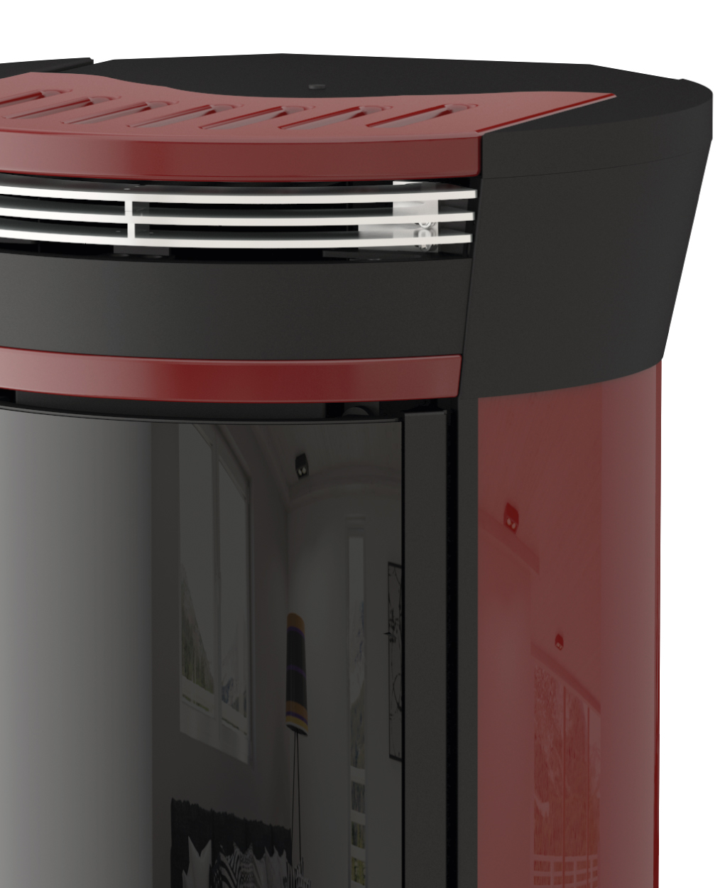 The deactivatable fans for hot air output make the stove very quiet. Heating occurs by natural convection.