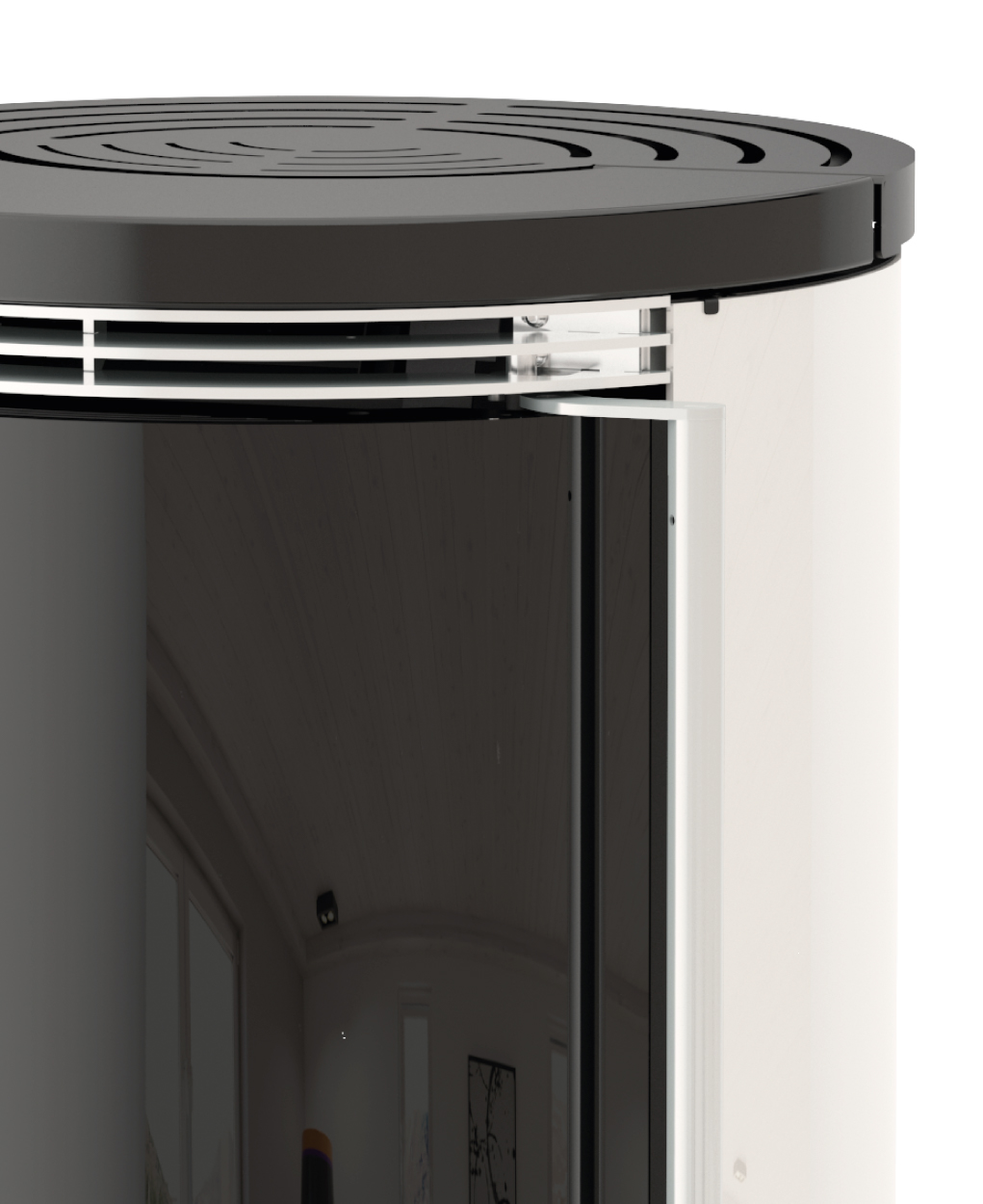 Discover ERGONOMIC, the thermostove that embodies efficiency, functionality, and unmistakable style, making it the true star of your home. Perfectly round, it stands out for its elegant cylindrical glass shape and the steel handle that enhances its design, running along the full height of the front line and simplifying the opening.