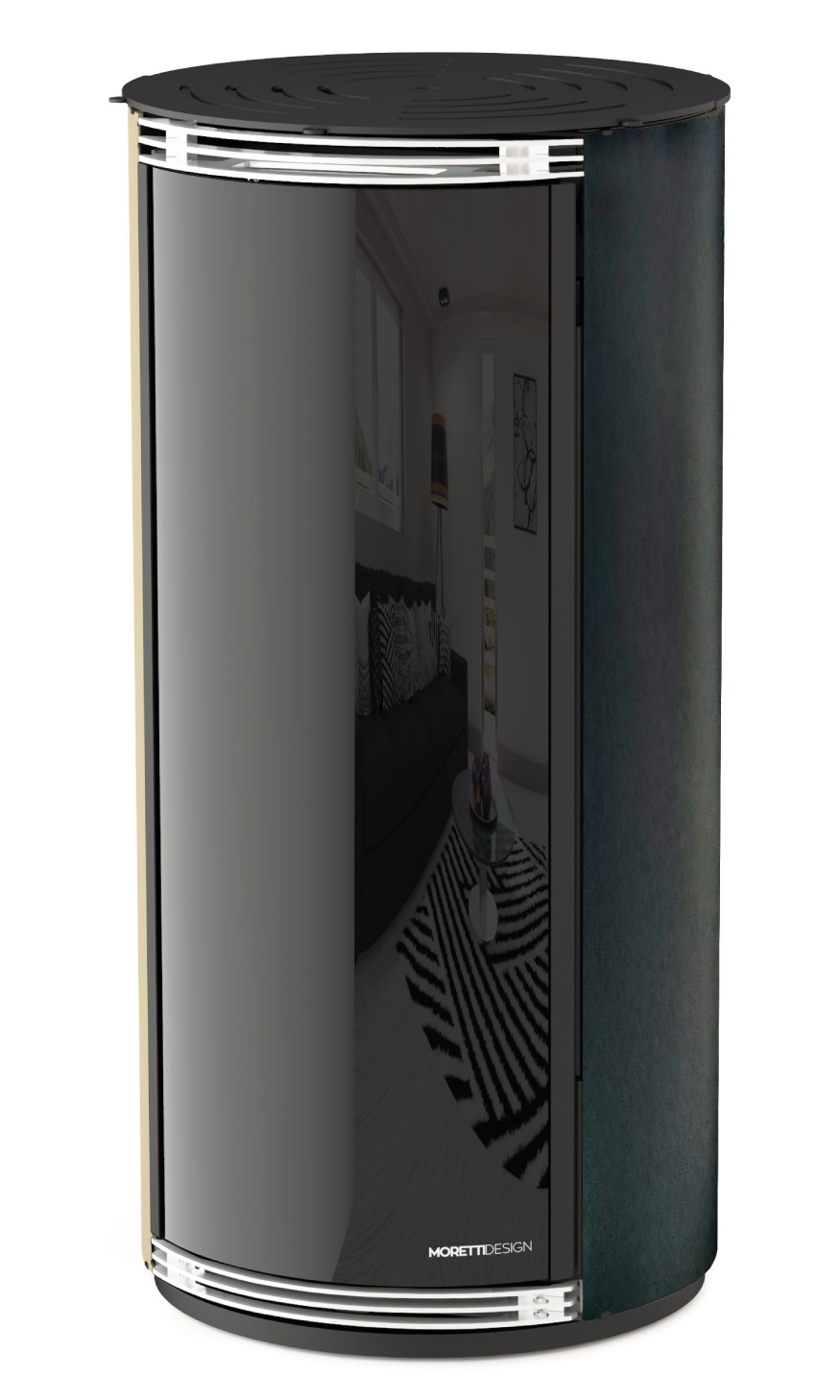 Vetro studiato e realizzato su misura per tutti i prodotti MORETTI DESIGN, consente la visione della camera di combustione solo a fiamma accesa. Il prodotto sarà anche in estate un eccezionale complemento di arredo.